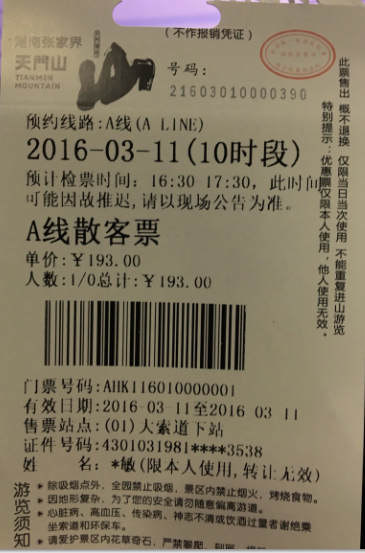 物理票一:纸制票、IC卡门票、磁条卡门票。前台购票、取票,自助机购票、取票,游客所获得是物理介质的门票。具体客人获得的是纸制、IC卡还是磁条卡或是其他类型的物理介质,是根据景区的现实情况而定的。