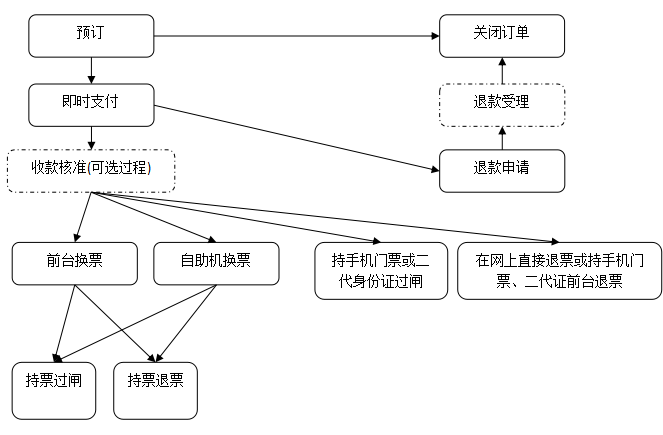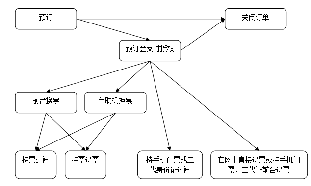 对于一个订单,关闭、现付取票或支付完成意味着订单进入终止状态,但代理商的业务并未终结。对于关闭,订单就此完结,没有后续。对于现付取票,订单转化成售票单,游客获得了门票,后续均由游客直接与供应商面对面沟通,进行消费或退票。对于即时支付、预订金支付授权、返款余额支付授权,订单转化成售票单,并下发了对应的手机二维码门票或以身份证作为门票使用并下发了入园许可通知。游客入园的,代理商没有后续业务;游客不入园的,可以直接到窗口或在代理商处办理退票。在代理商处办理退票的,遵循钱从哪来退回哪去的原则执行退款;游客在窗口直接办理退票的,请参看2.7.3关于退款。